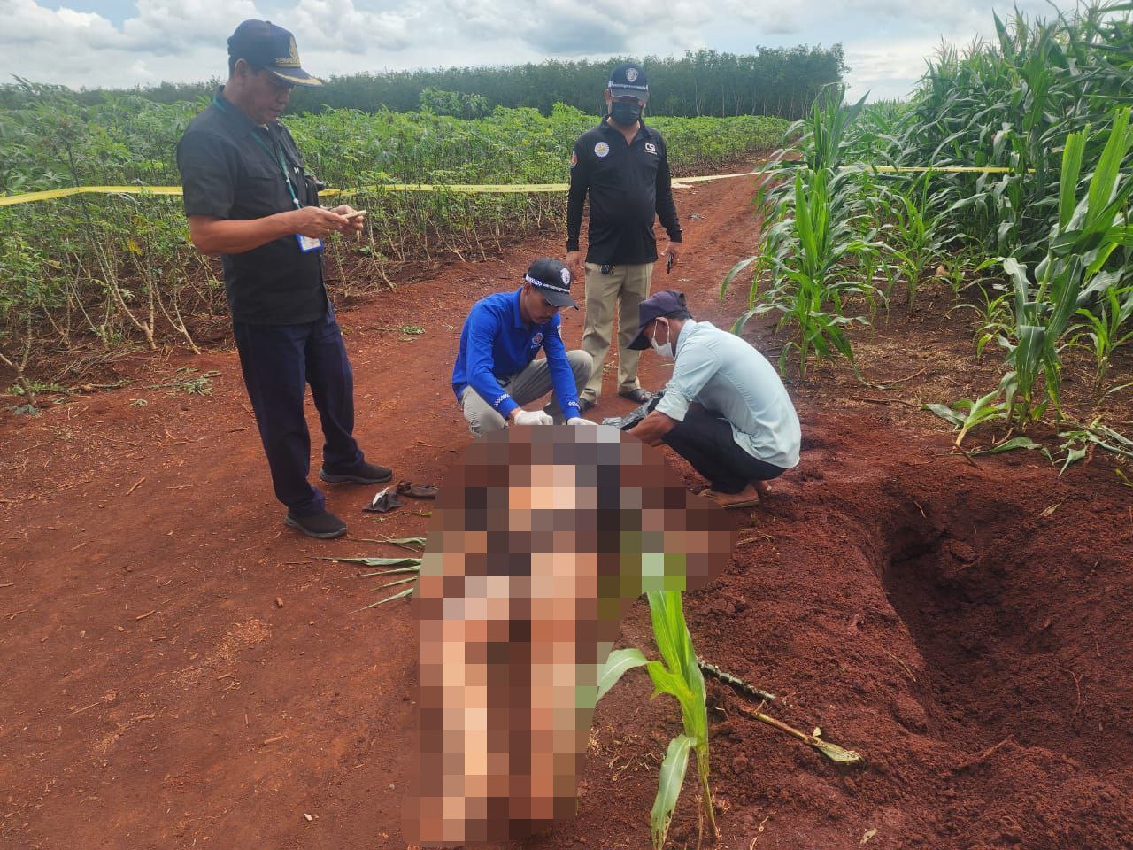9月21日上午,柬埔寨特本克蒙省发生一起骇人听闻的命案。一名当地农民在自家玉米地施肥时,意外发现一缕人类头发。出于好奇与不安,他随即用手继续扒开泥土,竟挖出了一颗人头,顿时吓得浑身发抖,立即报警。