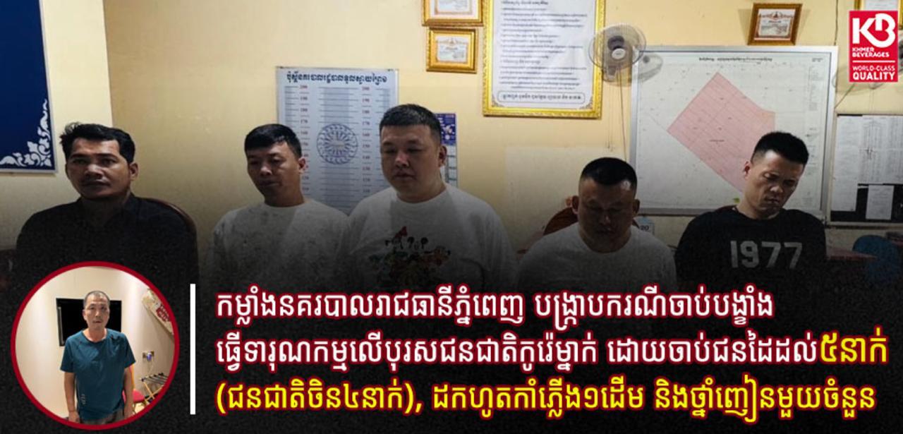 金边警方宣布,他们成功破获一起绑架案,解救一名韩国籍被绑人员,抓获5名绑架嫌犯。