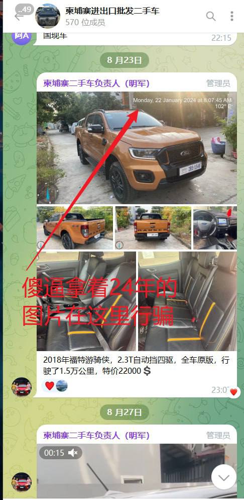 但是所有广告图片均盗用自美国网站,与实际车辆毫无关系; 骗子自称“总部在泰国”,并晒出“波贝口岸”视频定位,但从未出现车牌;有车商实地前往“约定地点”,发现那只是居民区或荒地,对方早已消失。