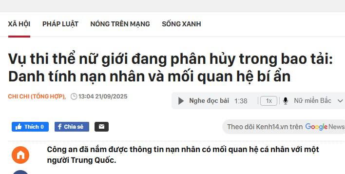 经初步调查,受害者疑似41岁的Đ.T.T.H.女士。其家人于9月12日报案称她失踪。令人震惊的是,警方调查记录显示受害者与一名中国籍男子关系密切。该男子于命案关键时间点(9月11日入境,12日离境)出现在越南。目前警方正联合多个部门深入调查此案。
